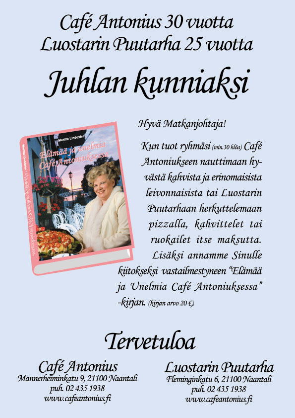 Mannerheiminkatu 9 21100 Naantali Lilja Ahtiainen Puh: 0400 829456 |